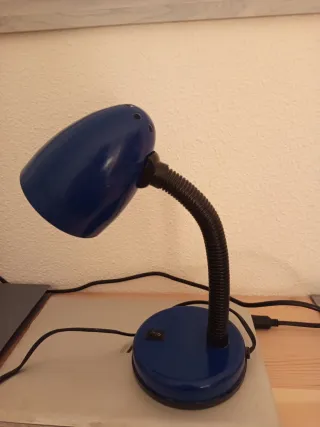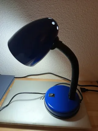 Lámpara de escritorio con un diseño moderno y funcional. Ideal para cualquier espacio de trabajo o estudio. Funciona perfectamente y la base es muy estable. Mide 37 cm de alto. Ojo!! Mirad bien las fotos porque tiene unas manchas en la base que no he podido quitar. Tampoco se ven demasiado pero ahí están. Por eso el precio tan bajo.