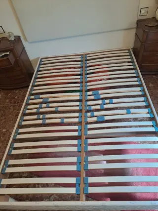 Base de cama de madera de la marca Tapi Flex. listones reforzados - Listones de madera. - Estructura resistente. - patas de madera. - tiene partidos algunos agarres de plástico, para se puede usar perfectamente.