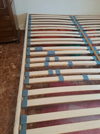 Base de cama con estructura metálica y láminas de madera. No tiene patas. Mejor entrega en mano en Almería capital.