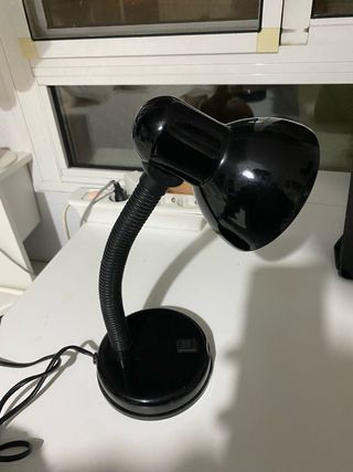 Flexo negro ideal para estudiar o trabajar. Su diseño permite orientar la luz fácilmente. - Base redonda y estable. - Cuello flexible para ajustar la posición. - Interruptor en la base.
