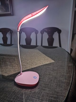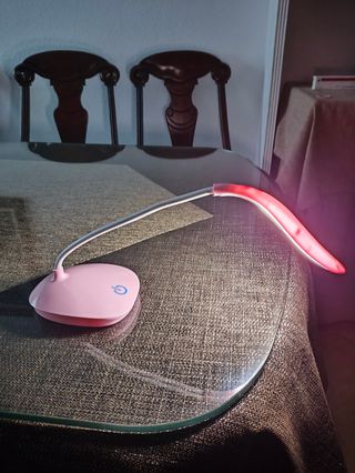 Precioso flexo para lectura color rosa clarito. Tiene 3 modos de intensidad de luz. Es flexible para ajustarlo al lugar de lectura (ver ejemplos en las imágenes).Tiene una batería de larga duración y se recarga con cargador de móvil. La batería dura de 3 a 6 horas según potencia. Está prácticamente a estreno porque no le gusta el color a mi hija.