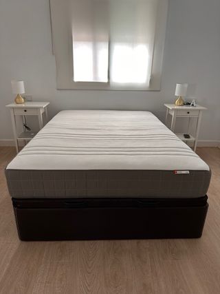 Se vende conjunto de colchón y canapé de 135cm. - Colchón con tejido de alta calidad. - Canapé de gran capacidad.