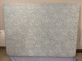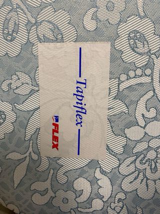 Base tapizada de la marca FLEX. Es de color azul con flores blancas. Medida 150x200. Con 6 patas. Perfecto estado Tapiflex