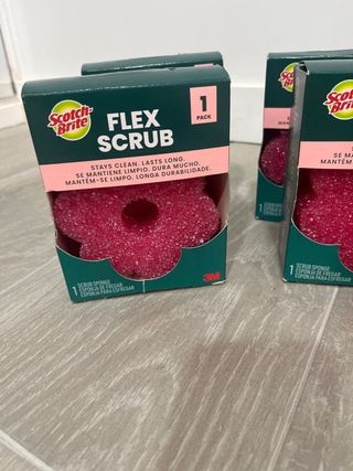 Estropajo Scotch-Brite Flex Scrub en color rosa. - Unidades: 1 pack. - Diseño en forma de flor. - Marca: Scotch-Brite. - Modelo: Flex Scrub. Precio por las cuatro unidades