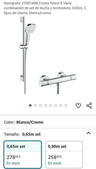 !El set incluye todo lo que aparece en la foto! Hansgrohe 27081400 Croma Select E Vario combinación de set de ducha y termostato, 0,65m, 3 tipos de chorro, blanco cromo Con 3 tipos de chorro Rain, IntenseRain y TurboRain Incluye ducha de mano, barra de ducha 0,65m flexo 1,60m y termostato de ducha visto Placer de ducha con solo pulsar un botón simplemente cambie de tipo de chorro con el botón fácil de usar. Producto fabricado de acuerdo con las más altas normas de calidad. Hansgrohe desde 1901 la marca de calidad para productos de cocina y baño de confianza