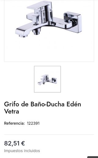 Grifo monomando baño-ducha Vetra modelo Edén, fabricado en latón fundido con acabado cromado brillo. Incorpora cartucho cerámico de 35 mm para un control suave y preciso, y aireador anti-cal. Incluye alcachofa, flexo de acero inoxidable de 150 cm, adaptador de pared, juego de excéntricas y embellecedores. Instalación sencilla y diseño elegante, ideal para baño moderno.