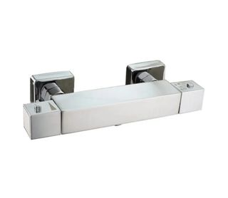 Grifo de ducha termostático Thermos T003 Ice Vetra, modelo Ice, de diseño cuadrado y acabado cromado brillo. Fabricado en latón fundido, resistente al uso diario y a la corrosión. Incorpora cartucho termostático de 35 mm con montura cerámica, que permite mantener una temperatura constante y un control preciso del caudal de agua. Incluye únicamente las tapas decorativas (embellecedores) para instalación mural. No incluye excéntricas, flexo, alcachofa ni otros accesorios. Compatible con instalaciones de ducha estándar donde los elementos se montan por separado.