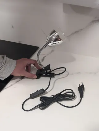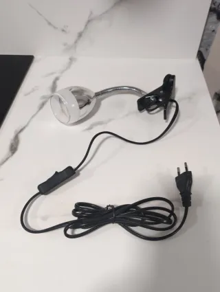 Lámpara flexo con pinza para sujetar fácilmente. - Cabezal ajustable. - Cable de alimentación con interruptor.