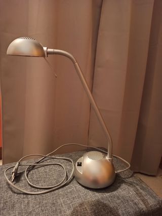 Lampara escritorio Lámpara flexo de trabajo, gris oscuro y blanco, Ikea SVALLET. Lámpara de estudio de plástico reciclado, premio internacional de diseño Red Dot Award. Proporciona una práctica luz dirigida, combina bien con todo y se puede llevar cómodamente de un sitio a otro de la casa. Bombilla E14 no incluida. Altura: 35cm / Diámetro del pie: 16cm / Diámetro de la pantalla: 11cm Longitud del cable: 200. En buen estado