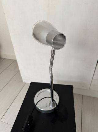 Lámpara de escritorio con brazo flexible. Tiene una pequeña mancha de pintura. No incluye bombilla - Base redonda. - Interruptor en la base. - Cable de alimentación con enchufe.