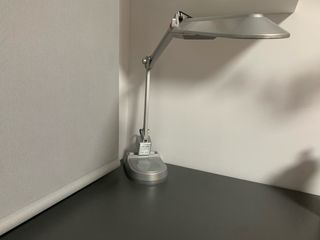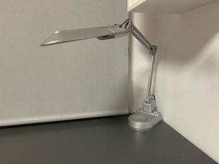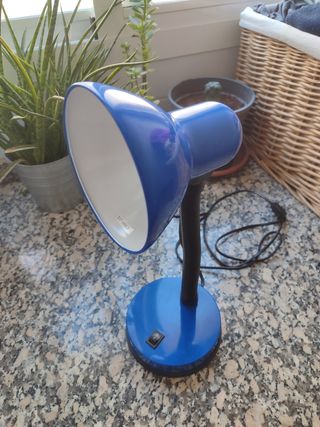 Preciosa lampara de escritorio en color azul y plata. Esta en muy buen estado, apenas usada. - Tiene un diseño elegante y minimalista. - Perfecta para iluminar tu espacio de trabajo o estudio. - Su brazo flexible permite ajustar la altura y la dirección de la luz.