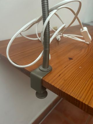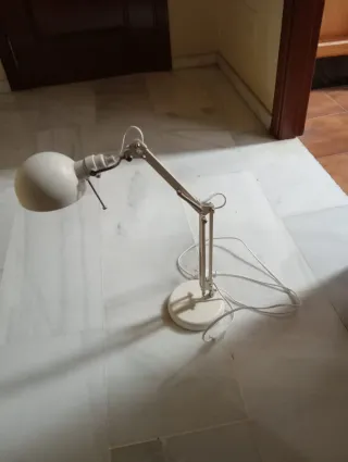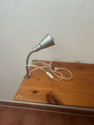 Lámpara de escritorio con un diseño moderno y funcional. Su brazo flexible permite orientar la luz fácilmente. Incluye la bombilla. Ideal estudio. - Base estable. - Interruptor en la base. NO ENVÍO, entrega en mano en zona Ciudad Jardín y Virreina.