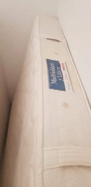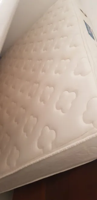 Colchón de la marca Pikolin en buen estado. Tejido de alta calidad. No esta arqueado ni bombeado, esta completamente nuevo, Solo las esquinas estan rotas por el tramsporte - Medidas: 150cm de ancho. - Material exterior: tela. Y madera - Tiene 6 patas. También puedo hacer el porte