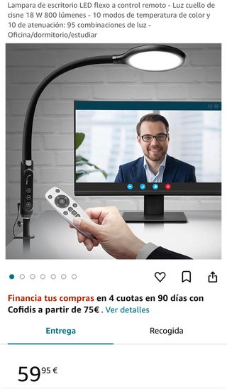 Flexo para estudio o trabajo muy potente y con una luz muy buena. No hace sombras duras, es regulable en intensidad y en temperatura de color, ya sea con el mando a distancia o con los botones que trae en el propio flexo. Esta sin estrenar en su caja original como se ve, NUEVO. Ahí se ve el producto en Amazon para ver la información, precio original y características. También tiene temporizador se puede entregar en mano en palencia valladolid zamora madrid y barcelona