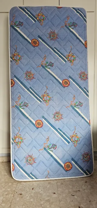 Colchón de la marca Flex con un diseño náutico. - Tejido de tela. - Estampado de anclas y timones.