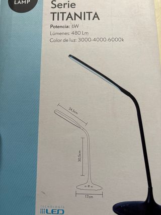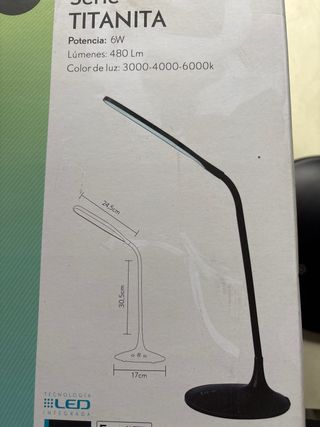 Flexo de LED de la serie Titanita. Cuenta con tecnología LED integrada. - Potencia: 6W - Lúmenes: 480 Lm - Color de luz: 3000-4000-6000k - Medidas: 24,5cm (largo), 30,5cm (alto), 17cm (base)