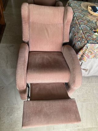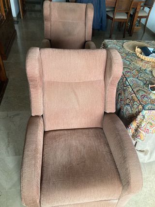 Conjunto de dos sillones reclinables manualmente. - Tapicería de tela. - Color marrón. Comprado en la casa flex, después fueron tapizados. Funcionan perfectamente. Hay que venir a retirarlos, tengo ascensor. Los vendo porque he comprado otros de diferentes colores. 70€ los dos o 35€ uno. Estarán disponibles hasta que me traigan los nuevos, después serán retirados por el transportista.
