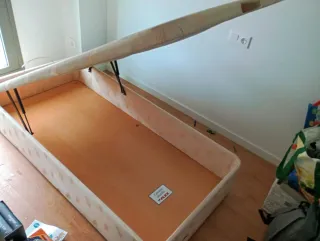 Base tapizada de la marca Flex, en color beige. Está prácticamente nueva, muy fuerte, pesa mucho , calidad súper buena ! Con las patas originales - Medidas: 135x190cm. - Tapizado en tela. Yo podría transportarla a su casa !