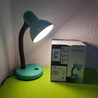 Se vende lámpara de mesa escritorio despacho oficina flexo de color azul clarito turquesa completamente nuevo a estrenar en su caja sin abrir. se realizan envíos por wallapop