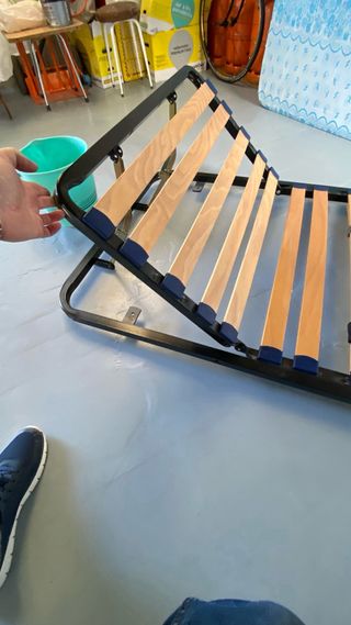 Somier articulado de madera con medidas de 80 cm de ancho por 180 cm de largo. Ideal para camas individuales. - Láminas de madera. - Estructura metálica. - Soportes de plástico.