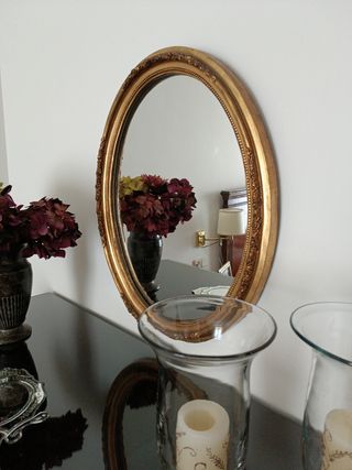 Elegante consola antigua de finales del siglo XIX o principios del XX, realizada en madera ricamente tallada y decorada con abundantes aplicaciones de bronce o latón dorado. Presenta patas curvas tipo cabriolé, friso frontal con cartela central y decoración vegetal en alto relieve. La tapa es de mármol verde veteado natural, original de la pieza. Mueble de gran presencia decorativa, ideal para recibidor o salón clásico. Estilo:Napoleón III / Neobarroco francés. Materiales:Madera tallada, bronce o latón dorado, mármol verde natural. Buen estado general, con pátina y desgaste por antigüedad. Recogida en mano. Medididas aproximadas.