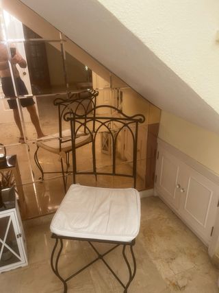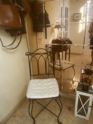 Elegante juego de dos sillas. Son perfectas para darle un toque clásico a cualquier espacio. - Estructura de metal resistente. - Cojines blancos desenfundables.