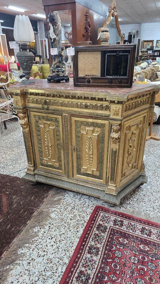 Precioso aparador antiguo de madera maciza, fabricado en Francia. Se encuentra en muy buen estado. - Elegante diseño de estilo - francés. - Tres cajones y dos puertas , - Tallados decorativos en la madera. - Patas torneadas. No negociable.
