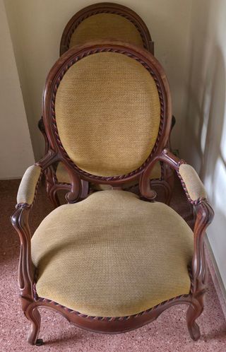 Conjunto de entrada o lectura estilo Frances Luis XIV . Uno de los sillones está desfondado