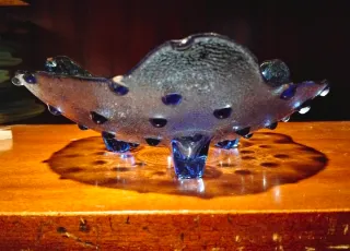 Se hacen envíos ✅ También se puede venir a recoger 🏃 Se vende bonito frutero de vidrio, de tono azul cobalto, con un diseño texturizado y burbujas, y 3 patas 🍽️ Si está interesado/a, contacte conmigo en chat o a mi WhatsApp (+34 643478193) 📞