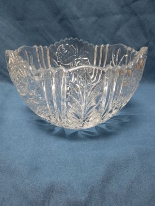 Precioso frutero de cristal de roca Polaco, transparente y con un diseño floral grabado, elegante y delicado Es una pieza vistosa, ideal para decorar tu mes - Forma de cuenco con bordes ondulados. Ver más en mi perfil.