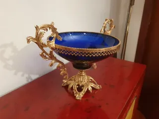 Jarrón Frutero Cristal de La Granja Azul Dorado