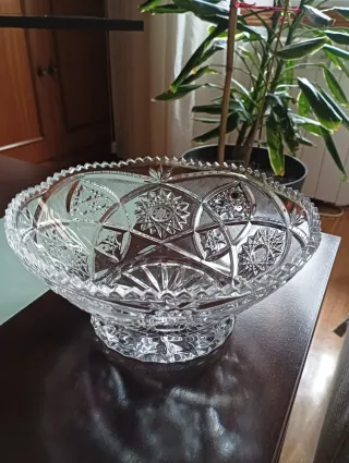 Vintage ! Centro de mesa, fuente, frutero, ensaladera de cristal tallado a mano. Medida de diámetro 20 cm x Alto 8,7 cm