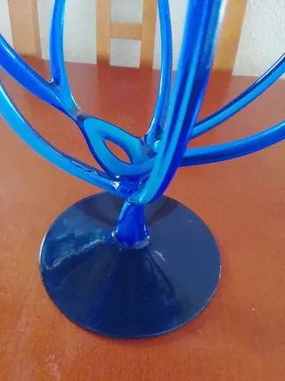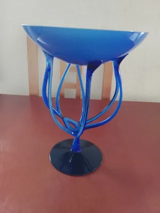 Elegante cuenco de cristal, perfecto como centro de mesa o frutero. Su diseño moderno y sus colores vibrantes añaden un toque de estilo a cualquier espacio. - Material: Cristal - Colores: Azul y blanco comprado en Francia mide 28x20 - Diseño: Moderno y escultural