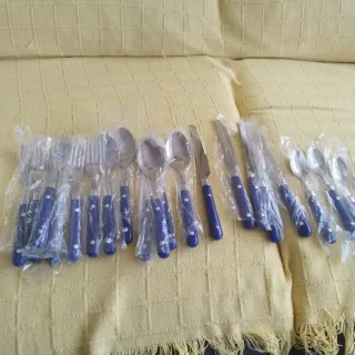 Cubertería azul y plateada