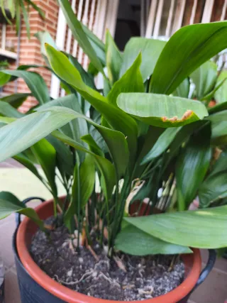 Planta de interior Aspidistra, también conocida como hoja de sauce o planta de hierro. - Hojas largas y lanceoladas de color verde intenso. - Ideal para espacios con poca luz. - En maceta de terracota Medida aprox 60 x 70