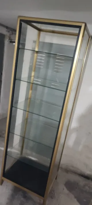 Vitrina de cristal dorada y transparente
