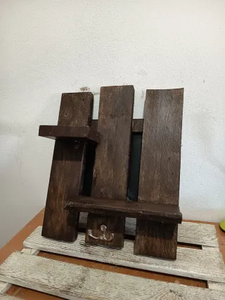 Estantería artesanal con un diseño rústico y encantador. Dale una segunda vida a tus rincones con esta pieza única. Hecha a mano con madera recuperada y terminada en un cálido tono nogal, esta estantería no es solo un mueble, es un detalle lleno de historia. Incluye dos baldas para tus tesoros favoritos y ganchos de estilo vintage para tus llaves o accesorios. ¡Un toque rústico y auténtico creado con mucho mimo!