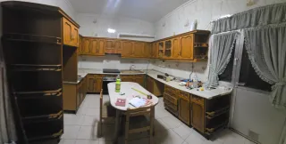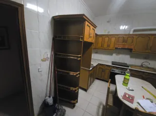Conjunto de cocina con acabados en madera. - Muebles de cocina con puertas de madera. - Encimera de mármol. - Estanterías de cristal. - la cocina incluye fuegos de acero inoxidable ñ, campana y horno. Urge recogida.