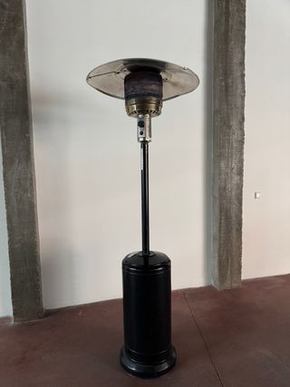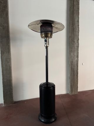 Estufa de gas tipo seta para exteriores. Ideal para terrazas y patios. - Color negro. - Diseño moderno y funcional. -NO MANTIENE LA LLAMA TIENEN QUE REVISARLA ES COSA DE POCO -SERA EL TERMOPAR