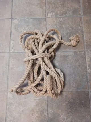 Soga antigua de yute, con un largo de 10 metros. Ideal para proyectos de decoración o manualidades. - Material natural. - Color beige y marrón.