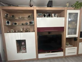 Mueble de salón modular con unas medidas aproximadas de 3,4 metros de ancho y 2,3 metros de alto. - Diseño moderno con combinación de acabados. - Amplio espacio de almacenamiento. - Incluye vitrinas y compartimentos. - es usado pero esta en muy buenas condiciones. - precio negociable. - urge venta -LA DECORACION Y ELECTRODOMESTICOS Y APARATOS ELECTRONICOS DE LA FOTO NO ESTAN INCLUIDOS, NO ESTAN INCLUIDOS, unicamente el mueble Solo recoger. Hay que desmontarlo y llevarlo (se puede llevar por módulos ya que se separan en 3 módulos)