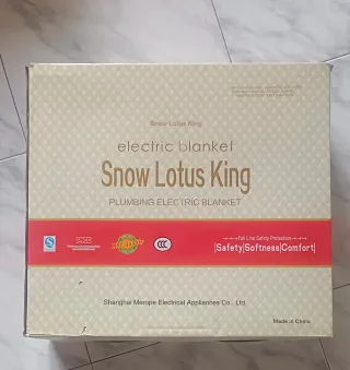 Manta eléctrica Snow Lotus King, ideal para mantenerte cálido. Cuenta con un diseño elegante y es perfecta para cualquier hogar. - Marca: Snow Lotus King - Modelo: PLUMBING ELECTRIC BLANKET - Certificaciones: S, PICC, 100% quality, CCC - Fabricante: Shanghai Merope Electrical Appliances Co., Ltd. - Origen: Made in China