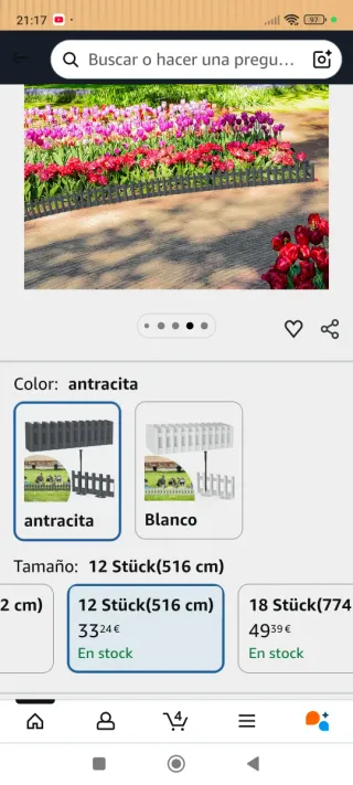 Valla decorativa para delimitar jardines o parterres. Color antracita. - Material: Plástico. - Color: Antracita. - Longitud total: 516 cm. - Incluye 12 piezas.