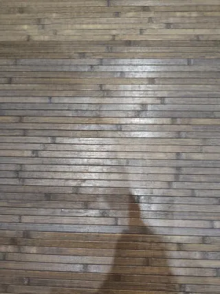 Alfombra de bambú con un diseño natural y elegante. Aporta un toque cálido a cualquier estancia. - Fabricada con tiras de bambú entrelazadas. - Borde de tela gris. - Textura única y agradable al tacto.