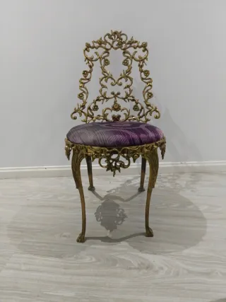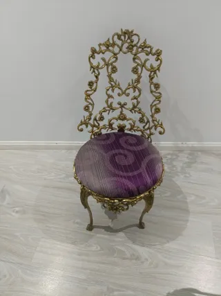 Silla antigua metal dorada y asiento morado