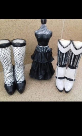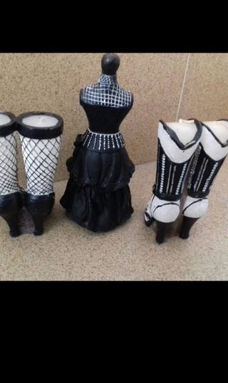 Por cierre de tienda, se vende Conjunto de tres velas decorativas con diseño de bailarina y vestimenta. Medidas: Bailarina 19 x 6cm Botas y tacones 14 x 6cm No se vende por separado.