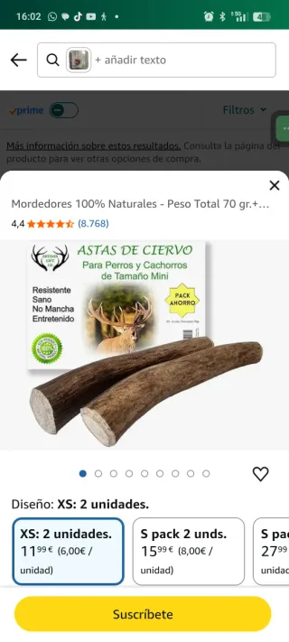 Mordedor 100% natural de astas de ciervo para perros y cachorros de tamaño mini. Es resistente, sano y no mancha.
