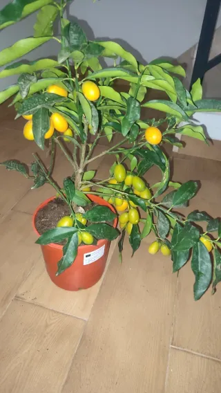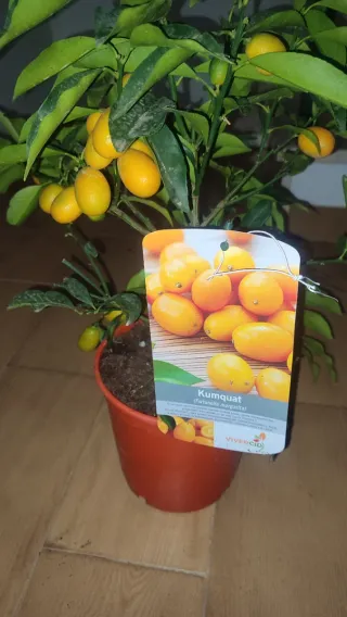 Planta de Kumquat, también conocida como naranja china, con frutos. - Planta en maceta. - Frutos de color naranja. - Ideal para coleccionistas de cítricos.