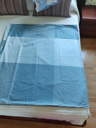 Funda nordica de cuadros en diferentes tonos Azules Esta como nueva , se ha usado muy poquito en una cama de invitados . Es para camas de matrimonio , de 1' 35 m y 1'50 m pero se puede poner en camas mas pequeñas . Mide 2'33 x 2'20 m No rebajo precio
