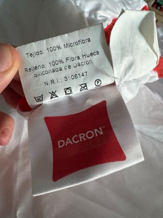 Relleno nórdico para climas templados. Tejido de microfibra. Relleno de fibra hueca siliconada. Muy transpirable. Ribetes en rojo. En perfecto estado. Sirve para cama 150 o 160 cm.